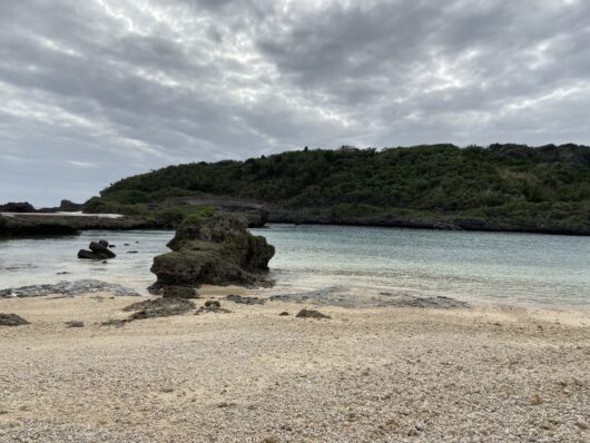 与那覇前浜ビーチのような砂浜ではなく、小石や岩が散乱しているので裸足で歩くのは危険です。サンダルやマリンシューズを履いて行きましょう。