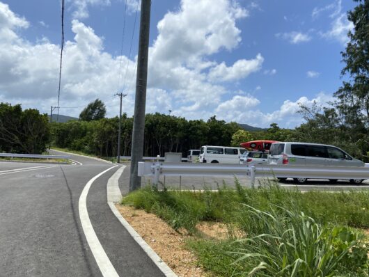 舗装された綺麗な駐車場はツアー会社専用駐車場らしいです。一般客は手前の駐車スペース(未舗装)に止めます。